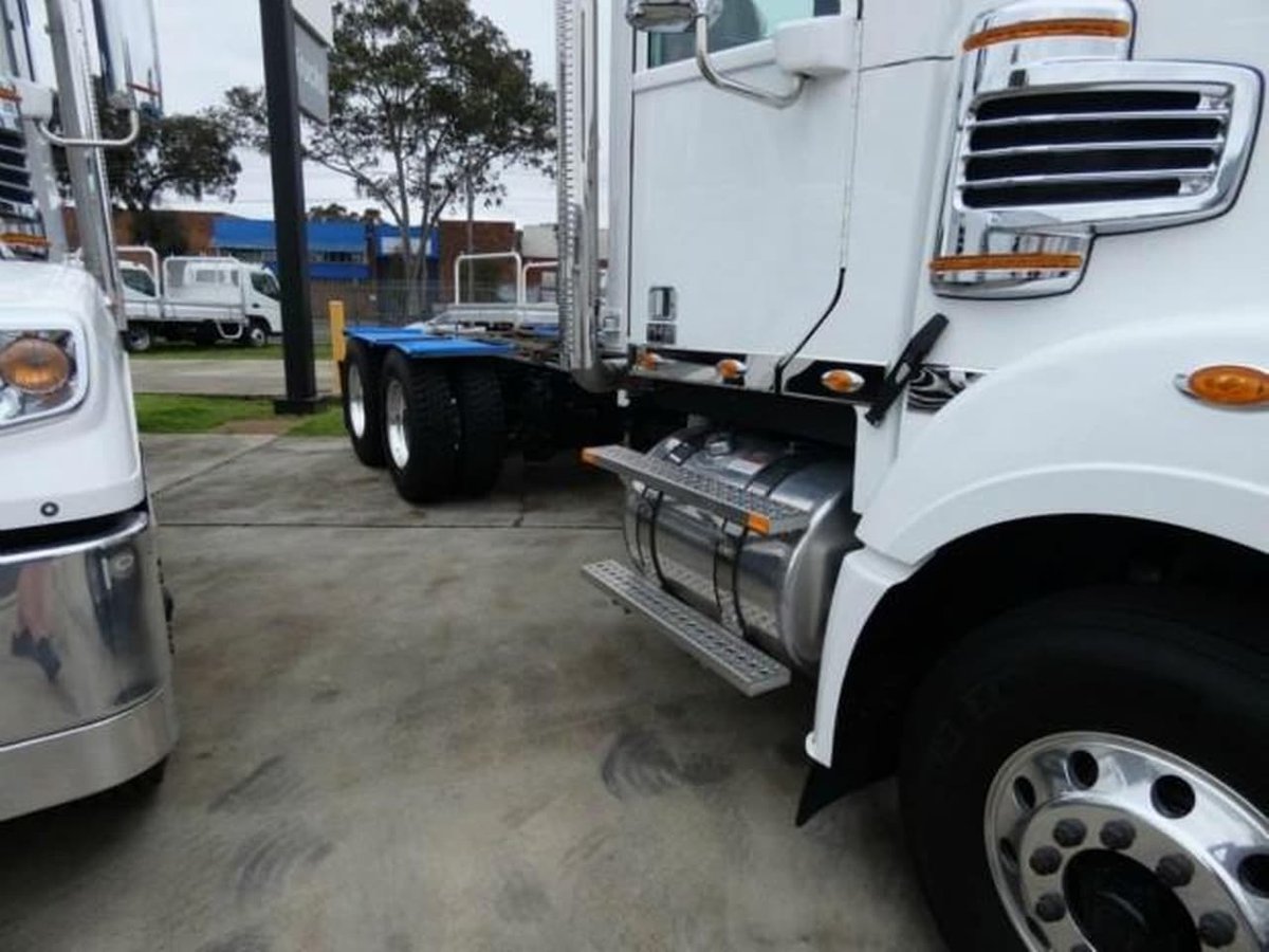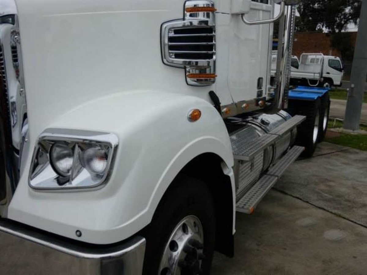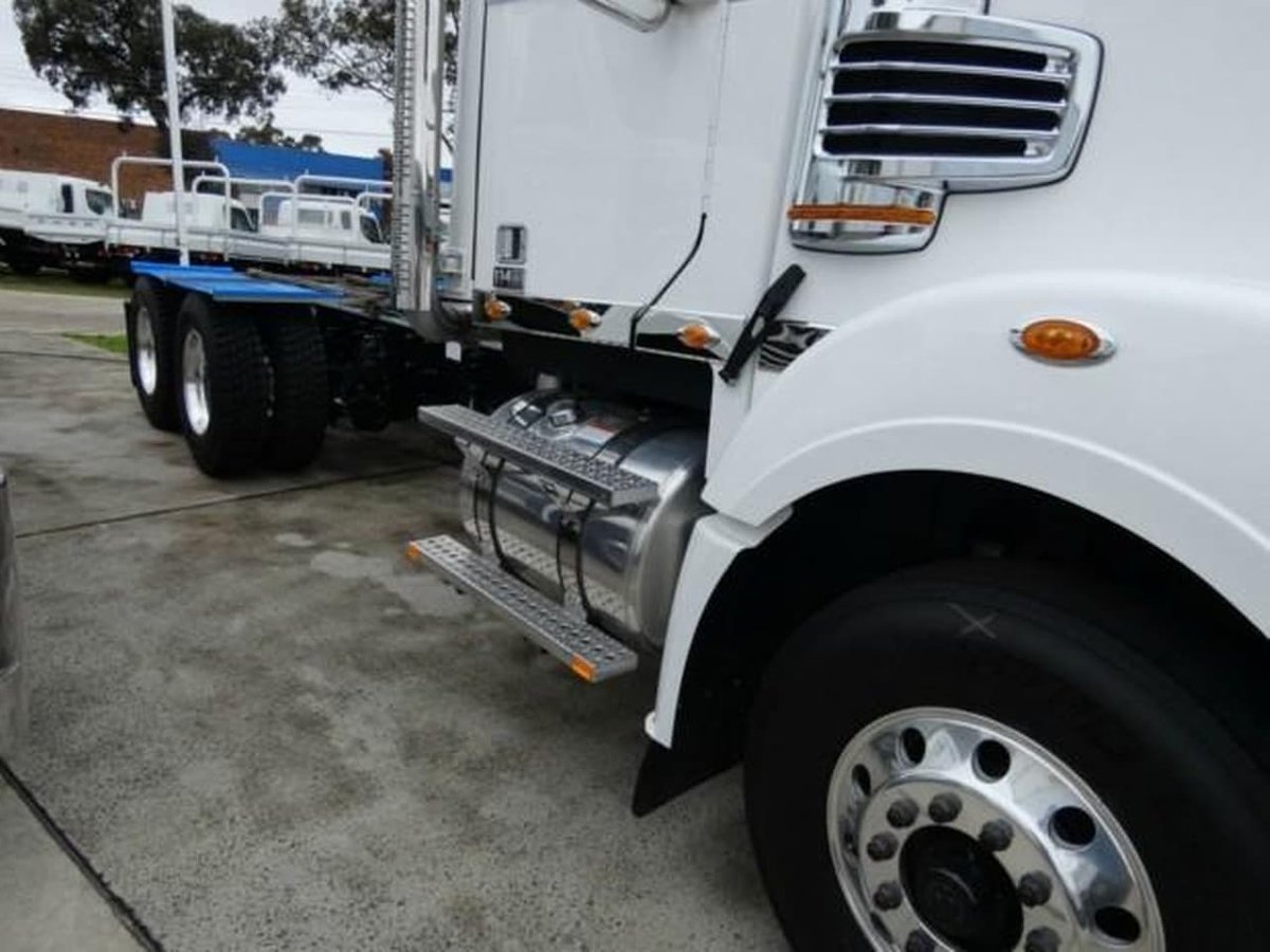 fitted with the legendary Detroit DD15 rated at 560 Hp coupled to an Eaton 18 speed manual transmission .Meritor's proven RT46-160 Drive axles with driver controlled differential locks, Freightliner 46K Airbag suspension. This truck is rated at 90,000Kg GCM. Its has ABS brakes with traction control, woodgrain steering wheel, Air ride drivers seat,The Detroit engine is backed by a 5 year/1,000,000km/500,000 litre/ 15,000 hour extended warranty,We have three of these units available at this