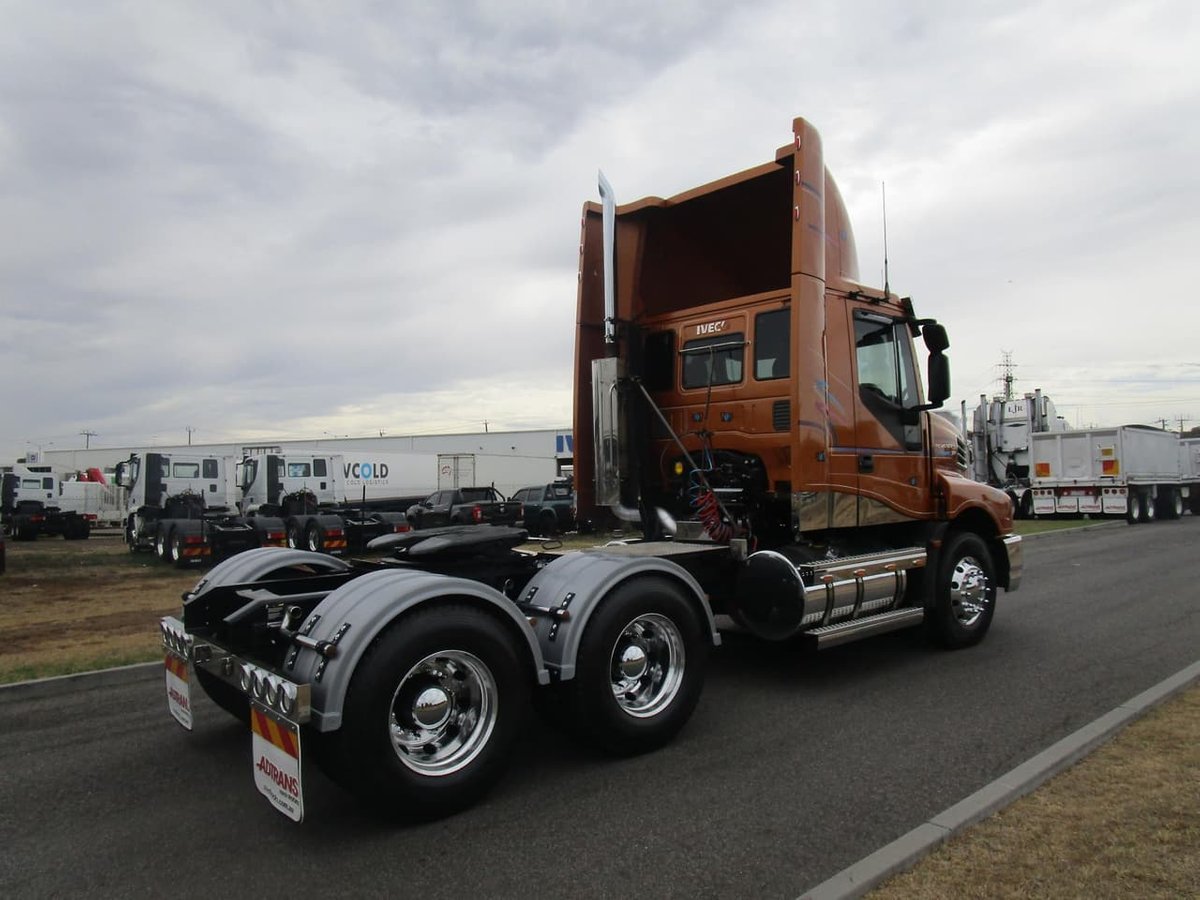 "2012 IVECO POWERSTAR 7200 6X4 DAY CAB PRIME MOVER, CUMMINS ISX 525HP ENGINE, 18 SPEED ROAD RANGER TRANSMISSION, RT46-160 REAR AXLES WITH CROSS LOCKS , ALLOY BUMPER, TWIN ALLOY FUEL TANKS WITH STAINLESS TRIMS, ALLOY WHEELS, STAINLESS DROP VISOR AND REAR LIGHTS BAR, ABS, AERO-KIT,