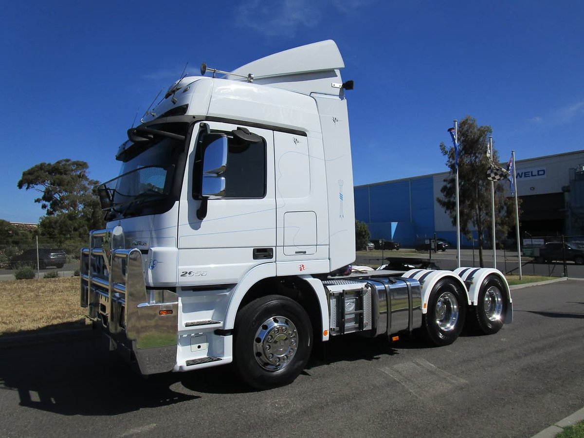 "2015 MERCEDES BENZ 2655 ACTORS 6X4 PRIME MOVER, MERCEDES BENZ 550HP V8 ENGINE, 12 SPEED AUTO TRANSMISSION, AIRBAG SUSPENSION, MERCEDES BENZ REAR AXLES, ABS, AD-BLUE, INTEGRATED SLEEPER BUNK BEDS, ALLOY BULBAR, ALLOY TANKS, ALLOY RIMS, DRAW FRIDGE, AERO-KIT, EXCELLENT CONDITION 90 TONNE B-DOUBLE RATED TRUCK!!!! LMCT10020