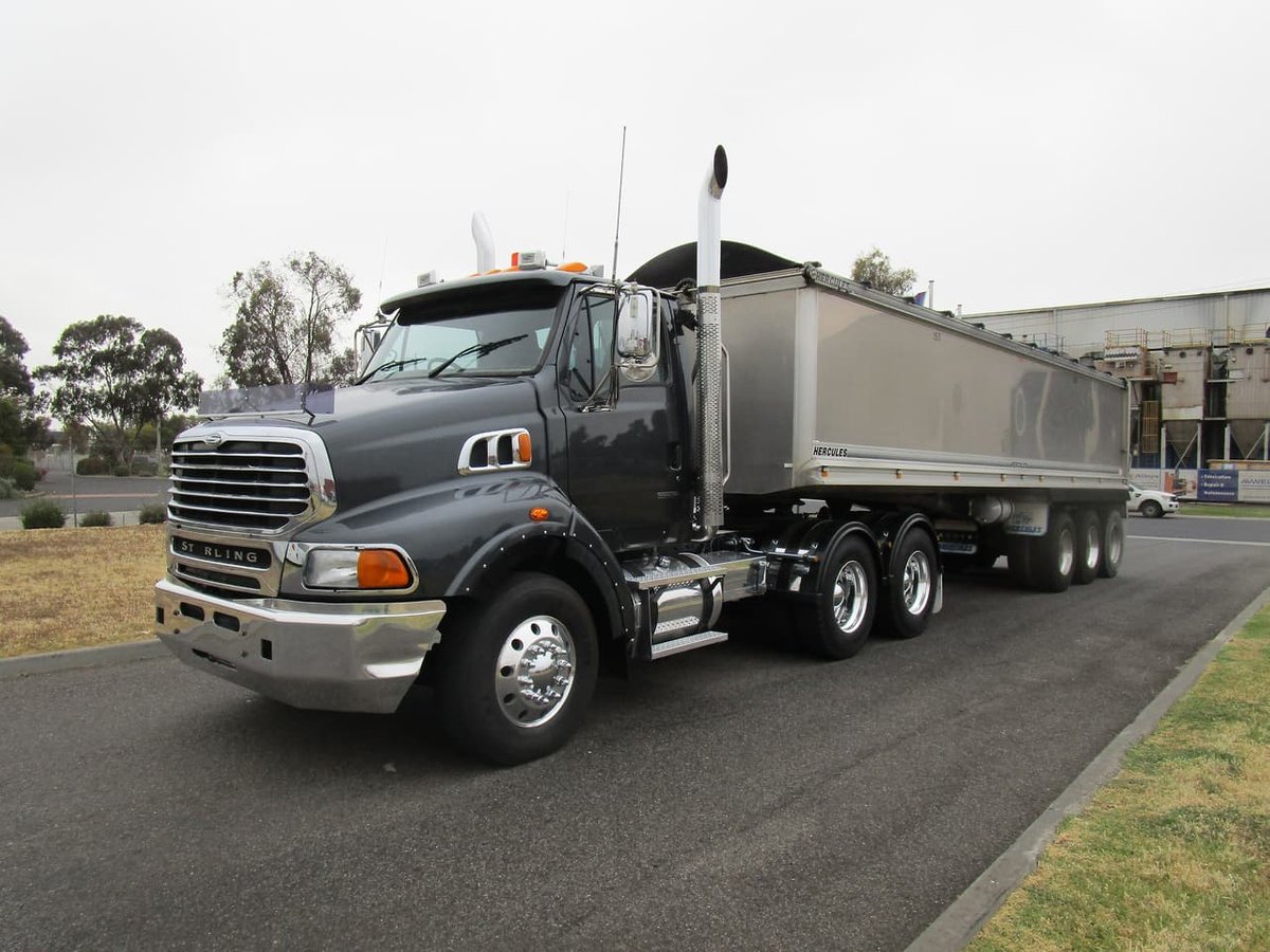 "2008 STERLING HX9500 6X4 DAY CAB PRIME MOVER, CATERPILLAR C15 ACCERT 550HP ENGINE, 18 SPEED ROAD RANGER TRANSMISSION, MERITOR RT46-160 REAR AXLES WITH CROSS LOCK, AIRLINER AIRBAG SUSPENSION, ABS, ** PTO - HYD **, TWIN ALLOY TANKS, ALLOY WHEELS, ALLOY FUPS BUMPER BAR, TWIN EXHAUST, FOLLOWING BEHIND IS A 2016 HERCULES HEST-3 TRI-AXLE ALLOY TIPPER, AIRBAG SUSPENSION, ALLOY WHEELS, REAR GRAIN SHOOT, ELECTRIC TARP, 41500 GVM. VERY NEAT AND TIDY COMBO!!!