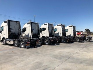 ** choice of 6 2015 Volvo fh16 globetrotter 6x4 prime movers ** Volvo 540hp engines , I-shift auto transmissions, airbag suspension, Volvo 56,000 lbs diffs, abs, 70 tonne rated, integrated high roof sleeper cabs, refrigerated cab coolers, alloy rims, alloy bullbars, excellent cond ex major fleet trucks with good service history !